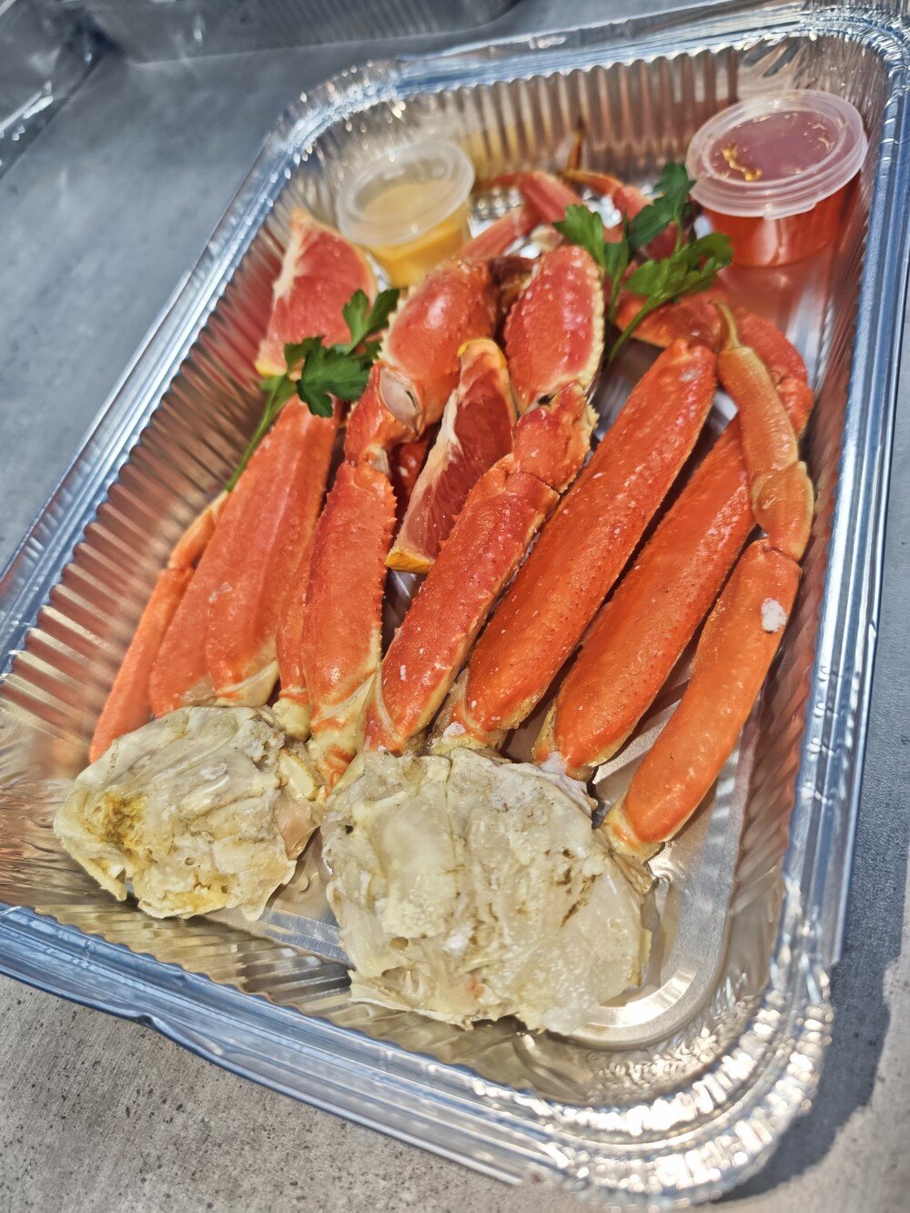 Нежнейшие фаланги краба с зеленью, соевым соусом, сладким Чили, сыр-чили и грейпфрутом