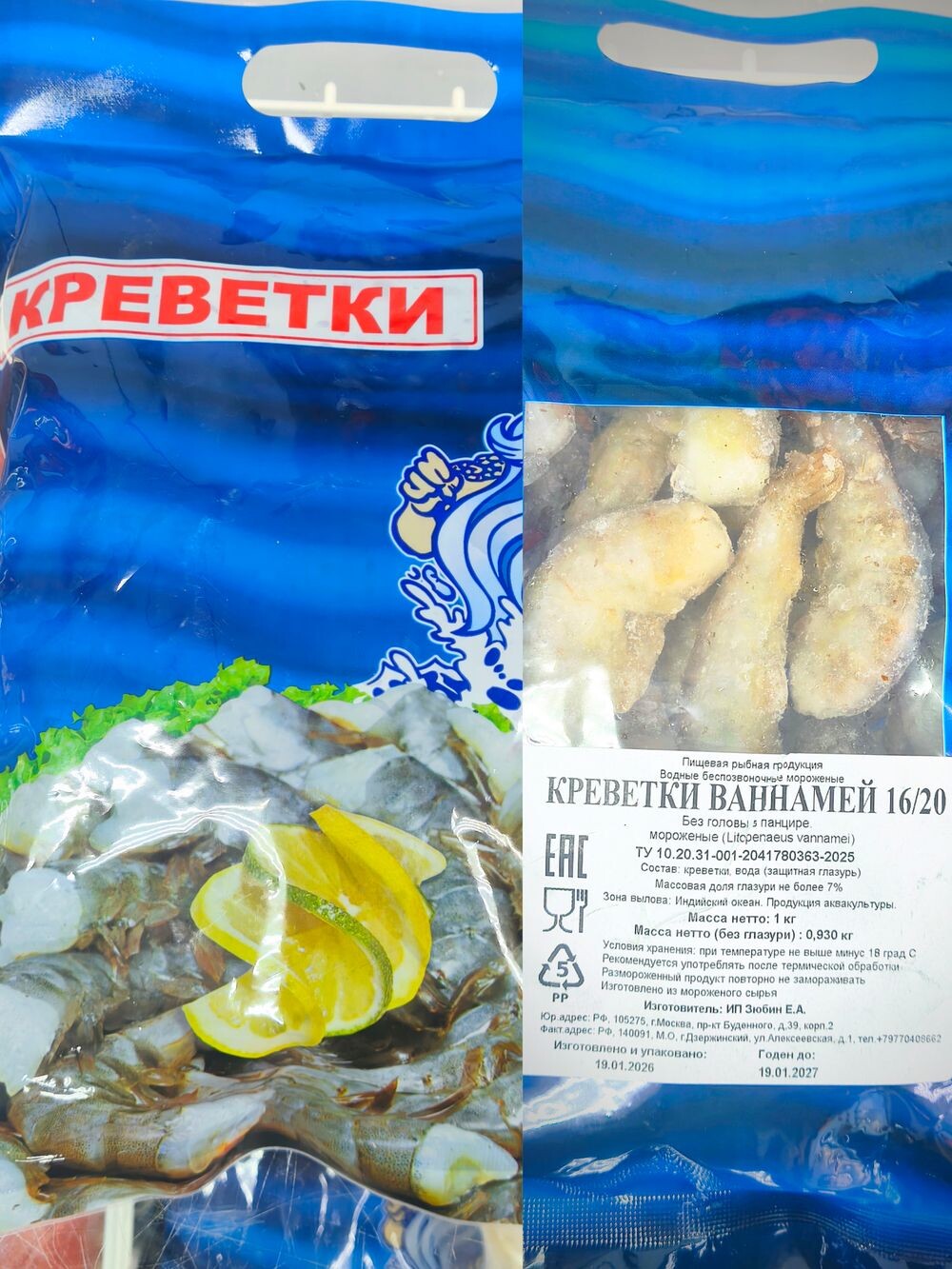 Креветка тигровая б/г (Ваннамей) 16/20